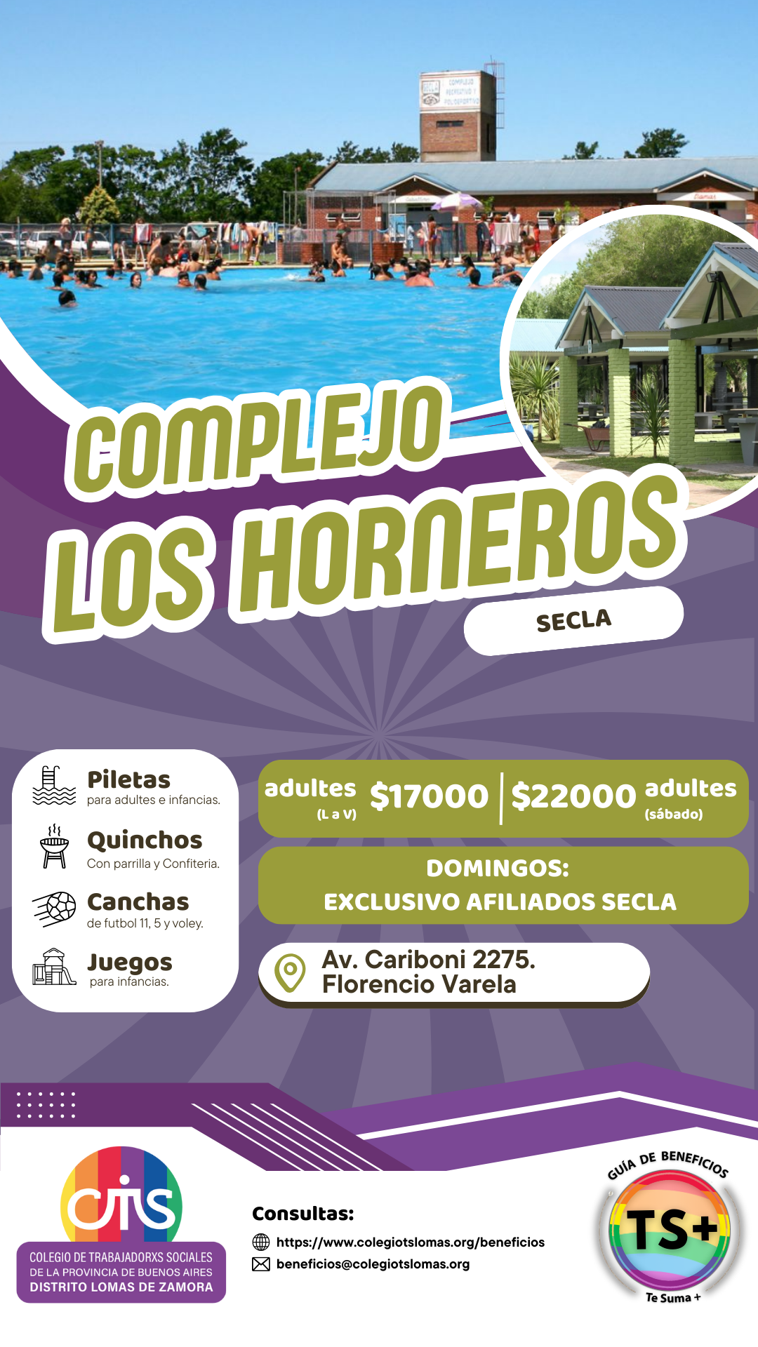 | Adultes con convenio | $17.000 | $22.000 | Exclusivo afiliados SECLA |