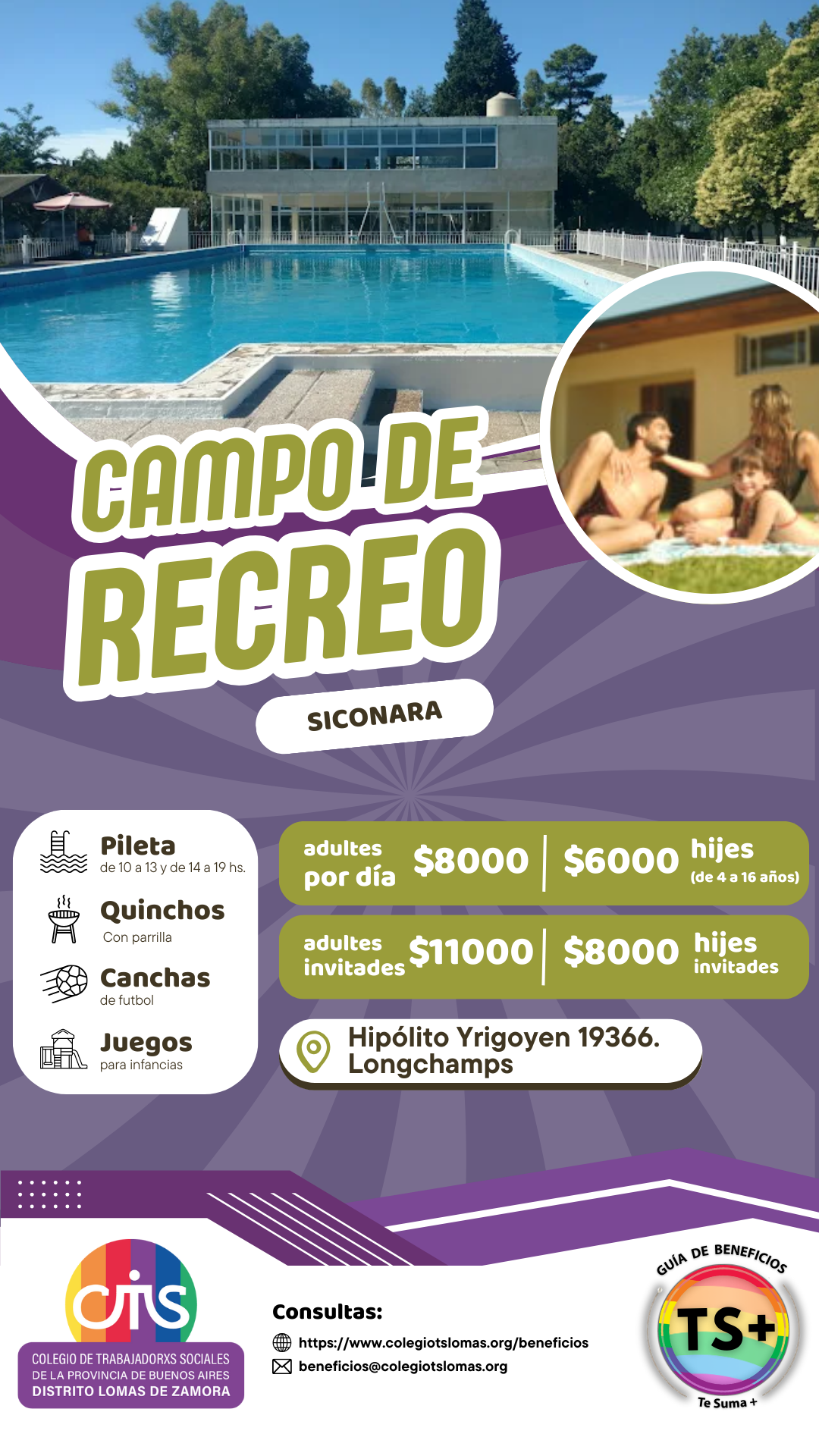 | Hijes 4 a 16 años (Grupo Familiar Convenio) | – | $6.000 | A partir de los 17 años paga como adulte |