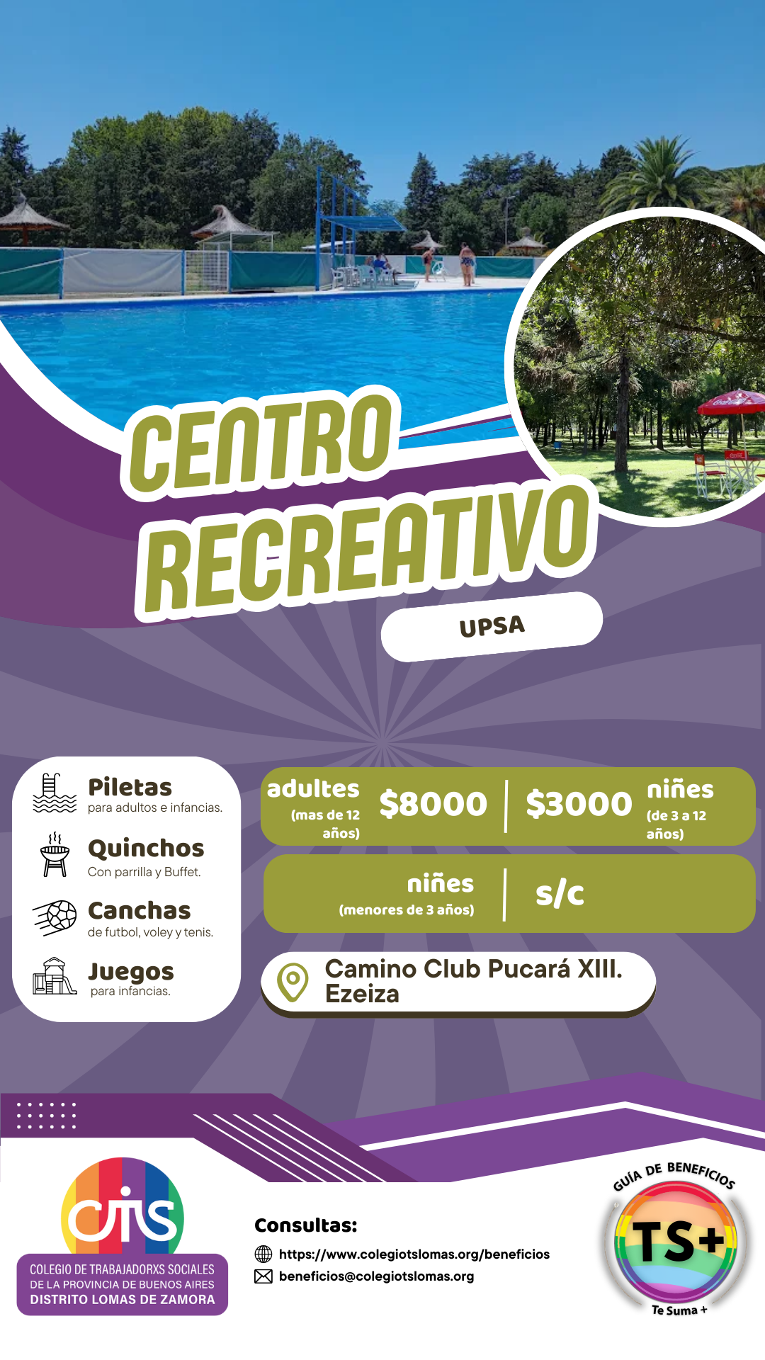 | Invitades mayores | $8.000 | Máximo 5 invitades por titular los fines de semana y feriados |